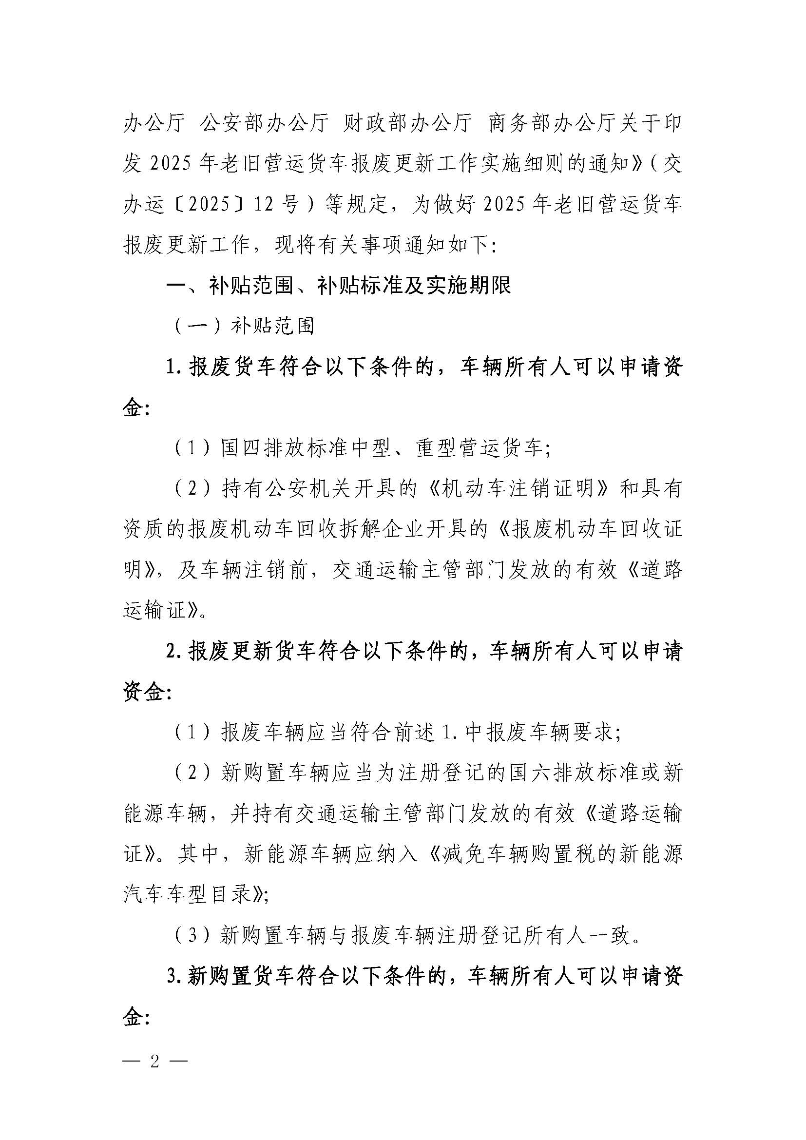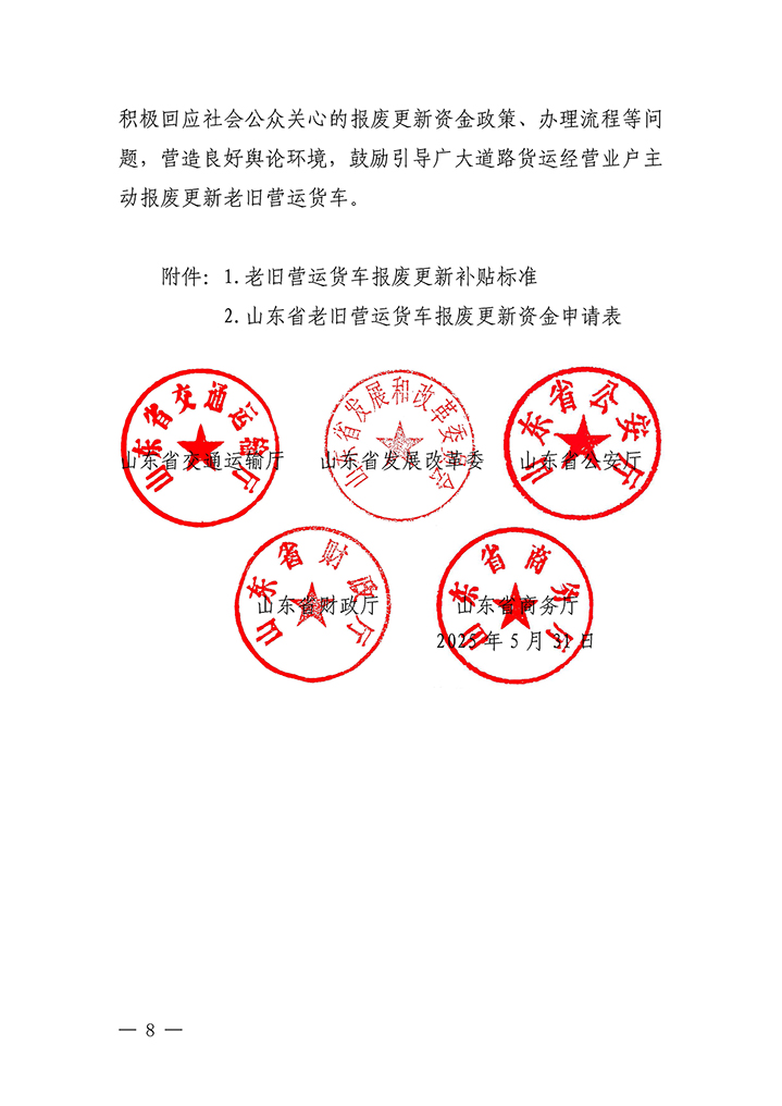 山東省交通運(yùn)輸廳等五部門關(guān)于印發(fā)《山東省2025年老舊營運(yùn)貨車報(bào)廢更新工作實(shí)施細(xì)則》的通知